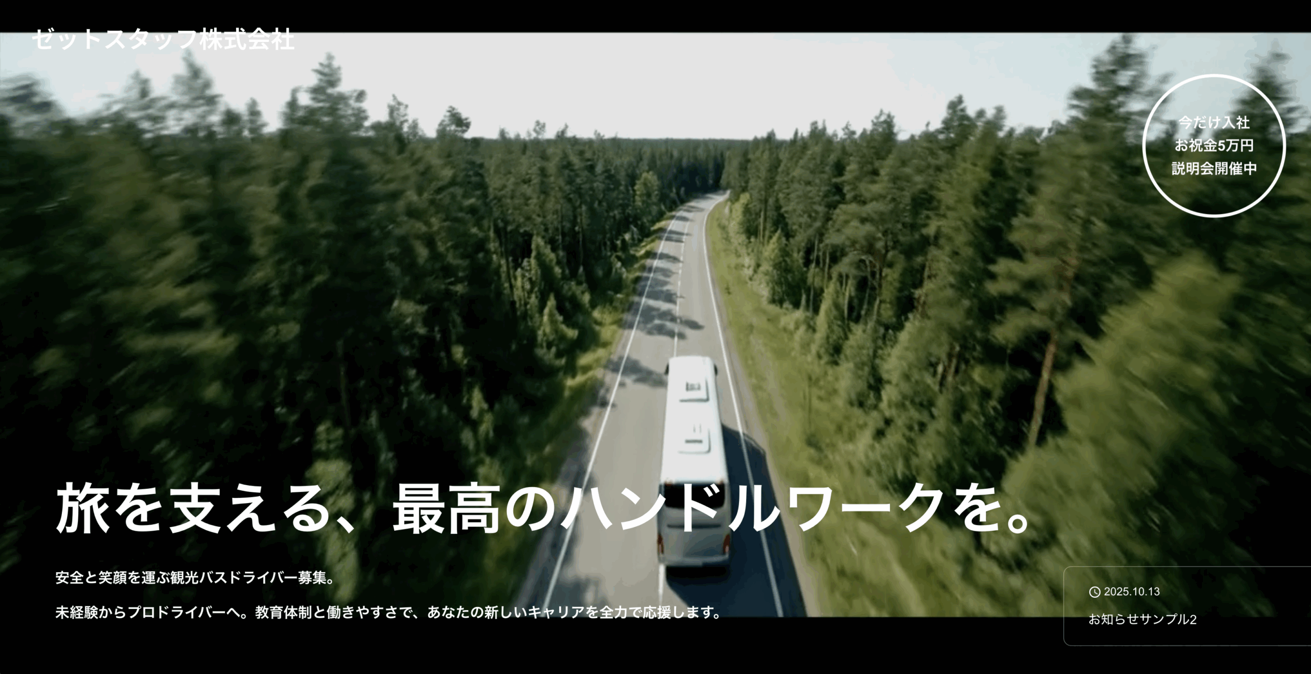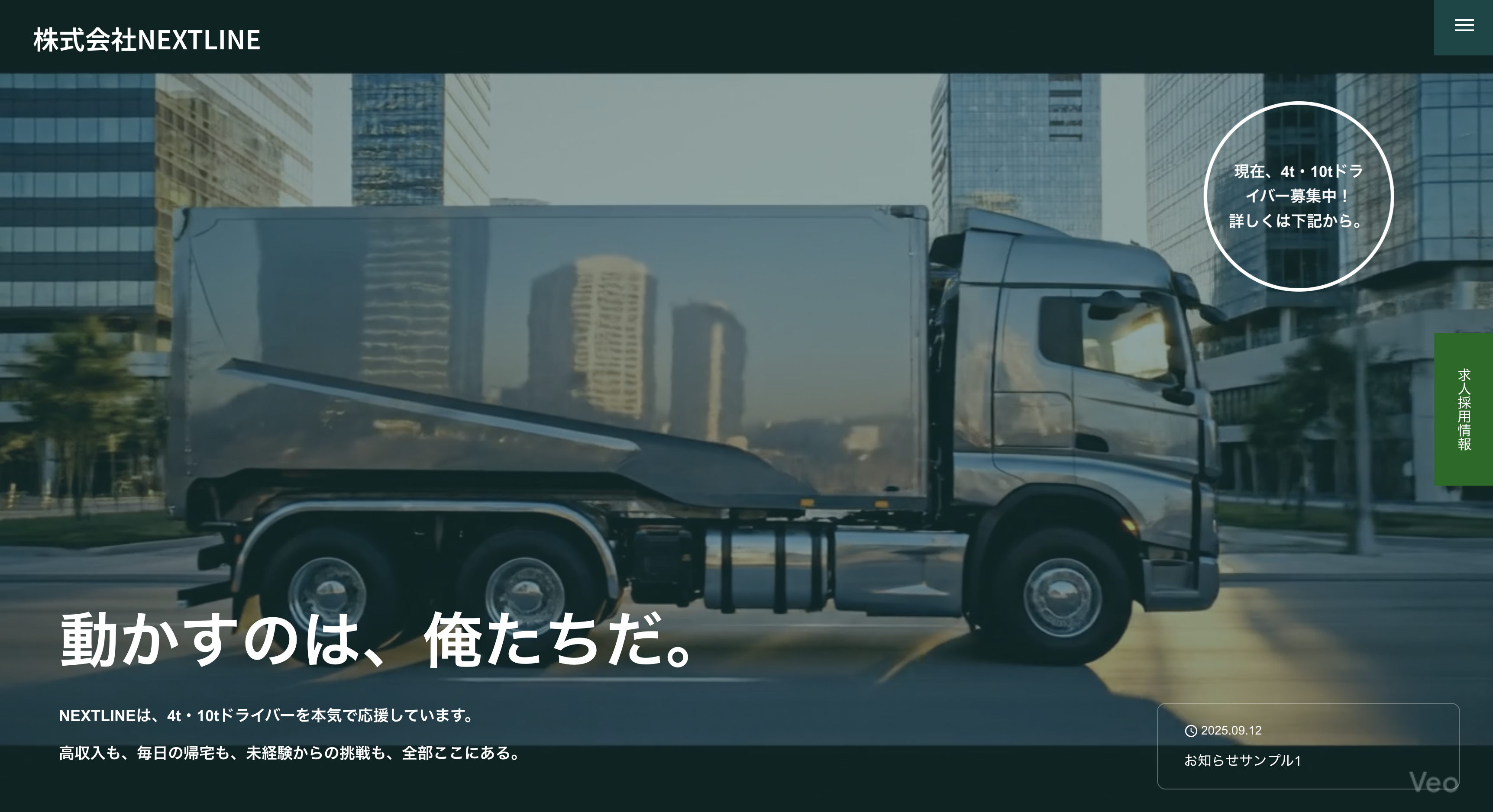 動画参考一覧 すべて表示 採用動画 会社紹介 インタビュー 株式会社NJS様・採用中 現場作業員を募集 このような動画を作りたい 株式会社NJS様・採用中 特殊車両ドライバーを募集 このような動画を作りたい 有限会社加茂電設様・採用中 電気工事士を募集 このような動画を作りたい 有限会社加茂電設様・採用中 電気工事士を募集 このような動画を作りたい 有限会社 野元商事 様・10名前後ご紹介→採用継続 2tドライバーを募集 このような動画を作りたい 櫻物流センター株式会社・7名前後ご紹介→採用継続 2t/4tドライバーを募集 このような動画を作りたい プラスアルファ交通株式会社様・30名以上ご紹介→採用継続 運転代行ドライバーを募集 このような動画を作りたい プラスアルファ交通株式会社様・5名前後ご紹介→採用終了 タクシー運転手を募集 このような動画を作りたい 株式会社真重機様・5名前後ご紹介→採用終了 土木作業員を募集 このような動画を作りたい 株式会社信英電気様・20名前後ご紹介→追加採用継続 電気工事士を募集 このような動画を作りたい 株式会社フェリス様・10名前後ご紹介→採用継続 訪問介護職員を募集 このような動画を作りたい 有限会社山陽様・20名前後ご紹介→採用終了 軽作業・重作業・ユニックドライバーを募集 このような動画を作りたい 有限会社名岐サービス様・20名前後ご紹介→採用終了 パッカー車ドライバーを募集 このような動画を作りたい 有限会社名岐サービス様・20名前後ご紹介→採用終了 ユニックドライバーを募集 このような動画を作りたい TMK株式会社様・5名前後ご紹介→採用終了 現場作業員を募集 このような動画を作りたい HP制作実績一覧 すべて 採用系 企業サイト TMK株式会社 若手求職者向けに設計した採用特化型サイト。動画・求人LP付き。 詳細を見る 株式会社信英電気 サービス紹介と問い合わせ導線を強化した企業用ホームページ。 サイトを見る 有限会社加茂電設 サービス紹介と問い合わせ導線を強化した企業用ホームページ。 詳細を見る ゼットスタッフ株式会社 サービス紹介と問い合わせ導線を強化した企業用ホームページ。 詳細を見る 有限会社名岐サービス サービス紹介と問い合わせ導線を強化した企業用ホームページ。 詳細を見る プラスアルファ交通株式会社 サービス紹介と問い合わせ導線を強化した企業用ホームページ。 詳細を見る 櫻物流センター株式会社 サービス紹介と問い合わせ導線を強化した企業用ホームページ。 詳細を見る 株式会社NEXTLINE サービス紹介と問い合わせ導線を強化した企業用ホームページ。 詳細を見る